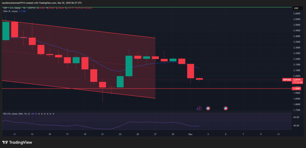 Jika XRP menembus wilayah nilai $2.00, tekanan bisa bersambung menuju area nan lebih rendah, sementara memperkuat dalam kanal hanya membuka kesempatan pantulan mini menuju wilayah nilai $2.20 sampai $2.25 tanpa mengubah tren besar.