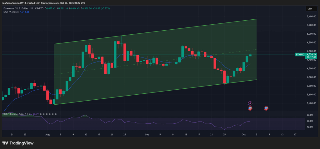 Ethereum memulai Oktober dengan dinamika nan menarik. Setelah sempat terkoreksi ke $3,900, ETH menunjukkan pertanda kuat bahwa titik bawah lokal mungkin sudah tercapai.