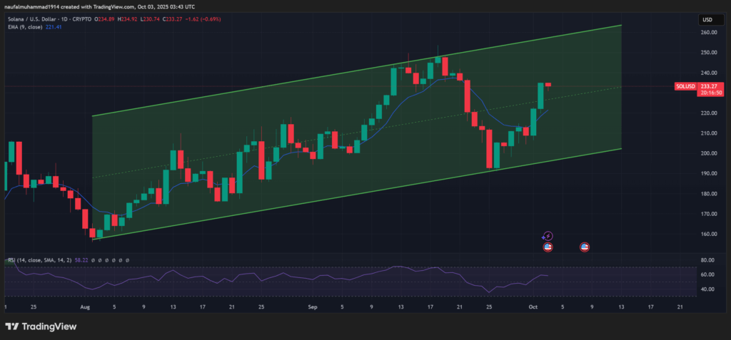 Solana kembali menarik perhatian setelah menembus $234, dengan potensi melanjutkan penguatan ke $254 jika dorongan beli tetap kuat.