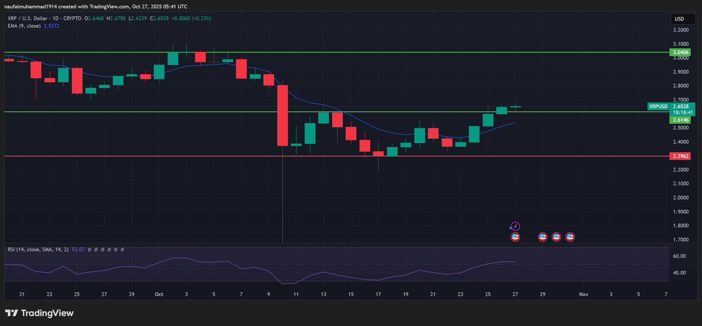 Struktur nilai saat ini menunjukkan bahwa support baru telah terbentuk di kisaran $2.61 hingga $2.63. Selama nilai bisa memperkuat di atas area ini, arah penguatan tetap berpotensi bersambung menuju $2.75 hingga $2.80.