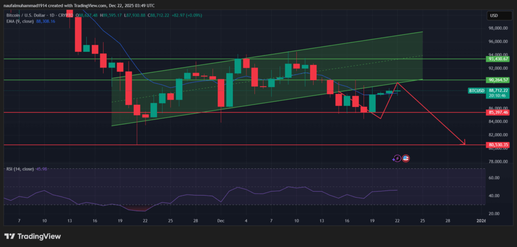 Jika sentimen akhir tahun membaik dan arus modal kembali masuk ke aset berisiko, Bitcoin berkesempatan menunjukkan respons positif nan dapat menggagalkan skenario penurunan lanjutan.