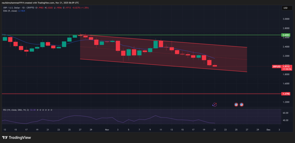 Sementara sentimen institusional berkembang, pergerakan nilai XRP saat ini justru menunjukkan tekanan kuat.